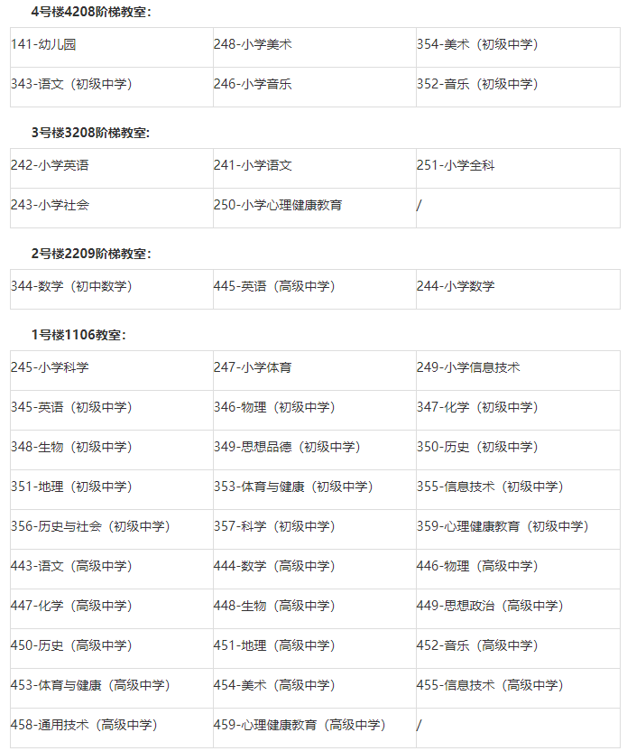 各候考室按科目报到,具体安排如下:
