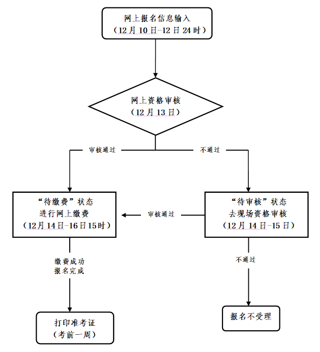 12月14日9时起在报名网站查询报名状态为“待缴费”的考生,表示网上资格审核通过,不需前往现场资格审核。