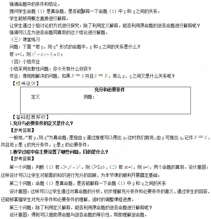 2017下半年浙江高中数学教师资格证面试真题(精选)第二批