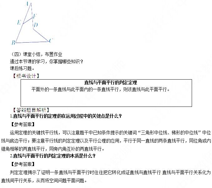 试讲题目:高中数学《直线与平面平行的判定定理》