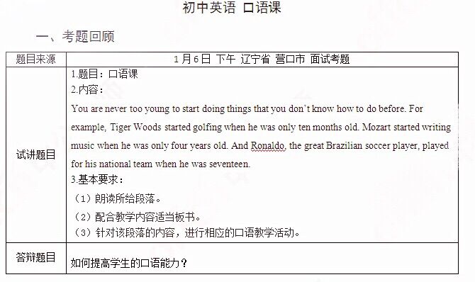 2017下半年浙江初中英语教师资格证面试真题(精选)第二批