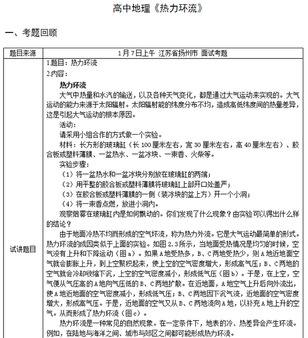 2017下半年浙江高中地理教师资格证面试真题(精选)第三批