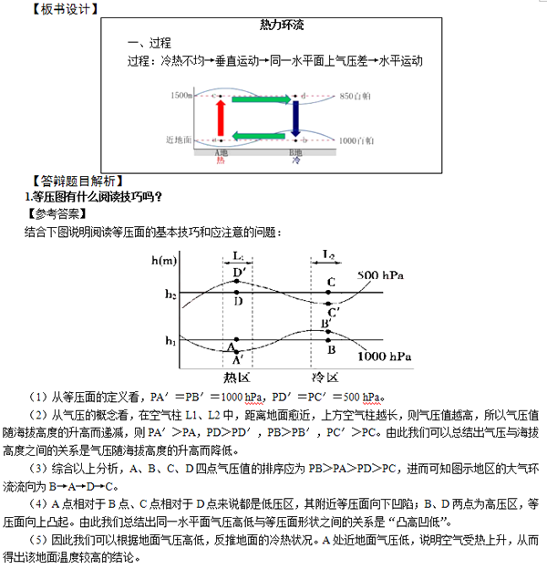 【学生回答】(1)冬季大陆形成高压。因为冬季陆地降温快,气温比海洋低,空气收缩下沉,空气冷而重,近地面形成高压;夏季大陆形成低压。因为夏季陆地升温快,气温比海洋高,空气受热膨胀上升,空气暖而轻,近地面形成低压。