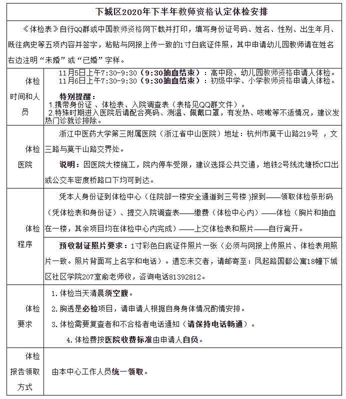申请人如有政策等疑问,可至本机构认定指导中心现场咨询或电话咨询,确定本人是否符合申请条件。(下城区教师资格认定指导中心地址:凤起路国都公寓18幢下城区社区学院207室,咨询电话81392812)