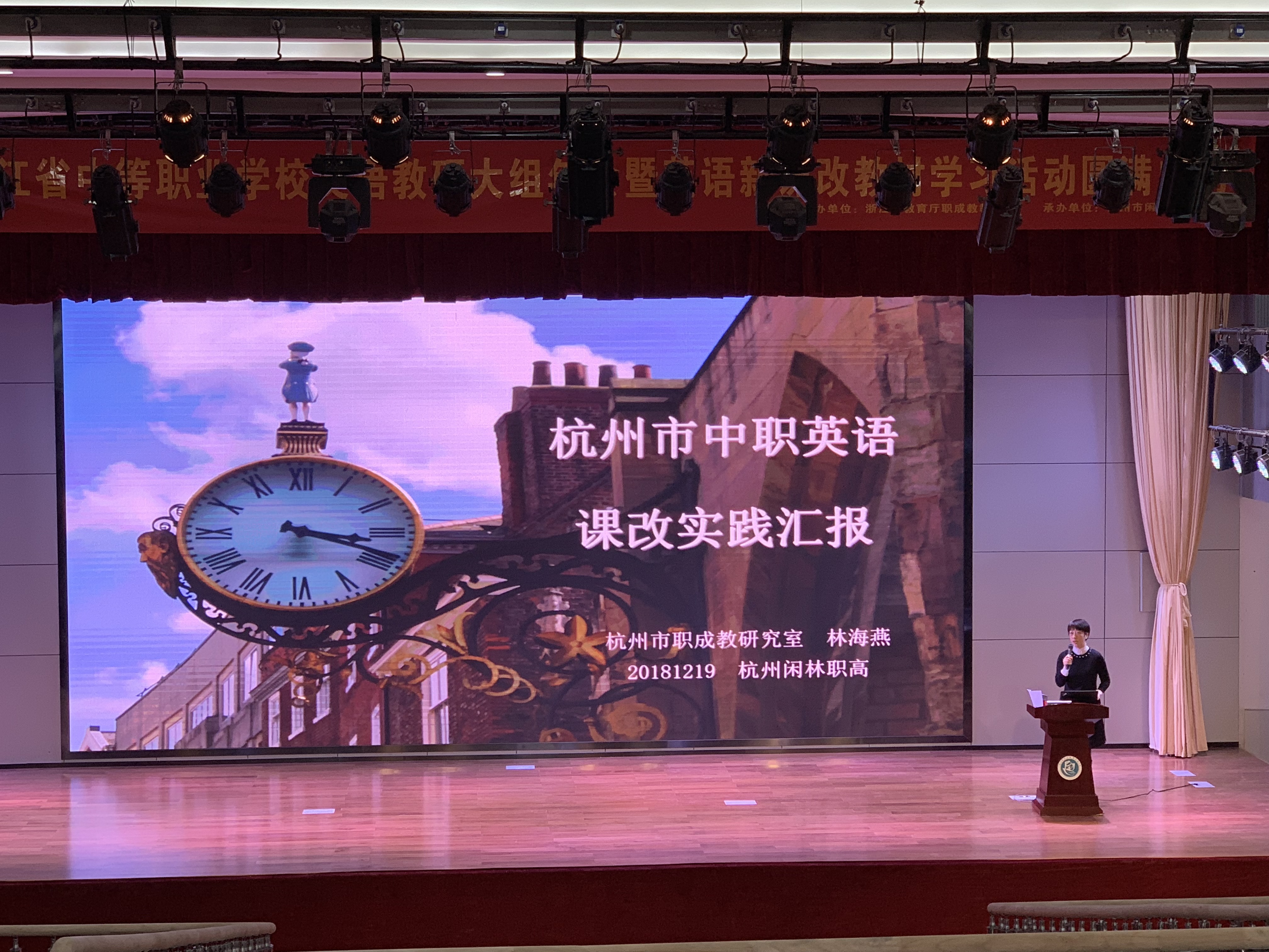 杭州市职成教教研室教研员林海燕进行课改汇报。林老师与我们分享了杭州市课改成果,参会者赞叹不已。