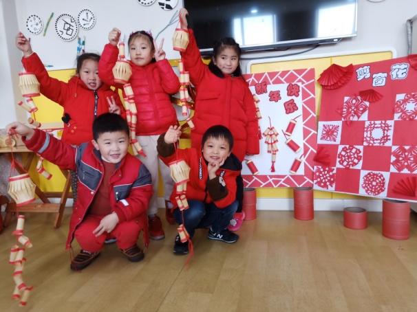 幼儿园以"木"元素为载体,探究幼儿可能的应用发展,为民间游戏特色建设注入了生机和活力,焕发出别样的生命气息。孩子们在木皮制作鞭炮灯笼的过程中,锻炼了动作技能和手眼协调能力,进一步了解中国传统木艺的历史文化;还赋予了幼儿园艺术活动浓郁的乡土气息,体验到另一种乐趣。