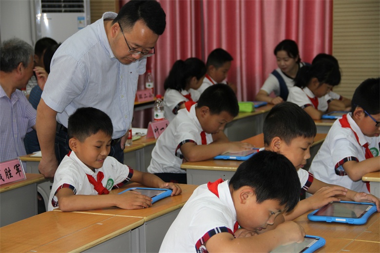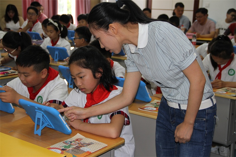 与会人员还听取了雅畈小学汪咏梅校长《推进移动学习终端应用典型》的经验介绍。雅畈小学自2017年9月成为全省第二批移动终端进校园的学校后,掀起了基于移动教学终端的“智慧课堂”教育教学改革的序幕。运用平板电脑后,上课师生交流多了一种新形式。新的交流方式带给学生的不仅仅是课堂气氛的活跃,学习兴趣的提高,更多的是让教师能更有效的运用多种形式把教学难点、教学重点攻克。校领导亲自带头上展示课,35周岁以下老师全员参与移动终端进课堂活动。