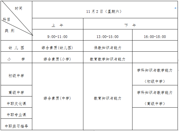 本次考试日期为2019年11月2日,各科目考试时间均为120分钟、采用纸笔考试方式。