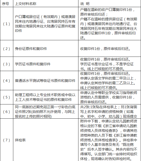 4.审核认定。申请人可适时登陆“中国教师资格网”查看个人各申请时段的状态。已通过教师资格认定的申请人员由温岭市教育局公告。认定审核通过后,申请表由认定机构生成和下载,加盖认定机构公章后一份存入申请人人事档案,一份由认定机构归档保存。