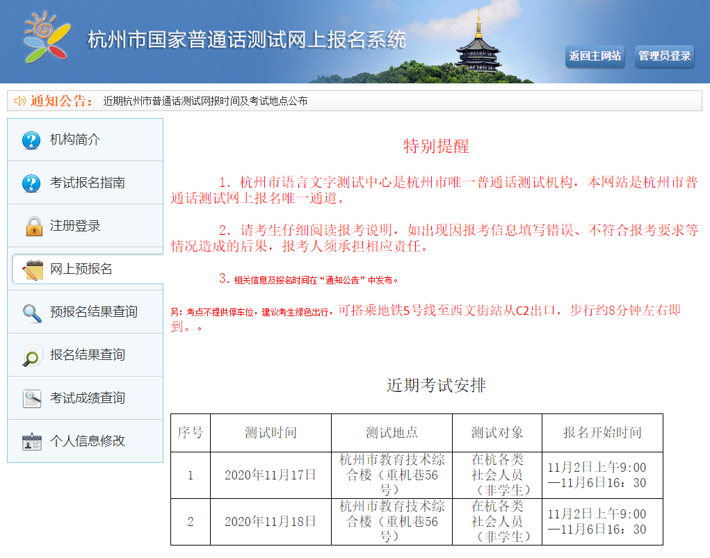 1.杭州市语言文字测试中心是杭州市唯一普通话测试机构,本网站是杭州市普通话测试网上报名唯一通道。