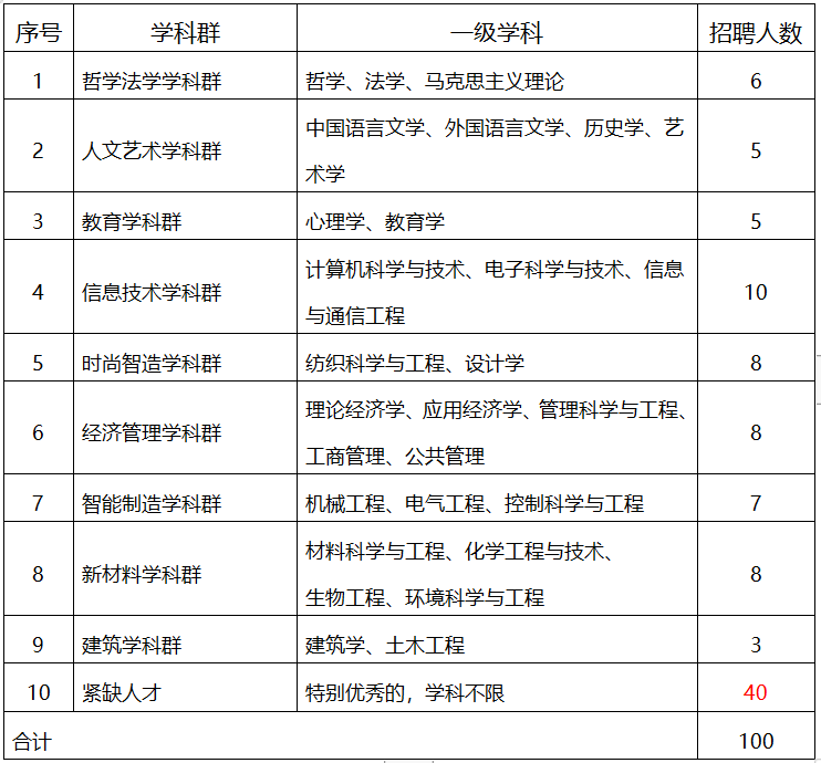 将原公告中“本次招聘高层次人才(含博士)共80名;团队若干”调整为“本次招聘高层次人才(含博士)共100名;团队若干”。具体计划详见《嘉兴南湖学院高层次人才与博士招聘计划表》(附件)。