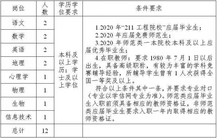 浙江教师招聘:金华第一中学2020学年招聘教师12人公告