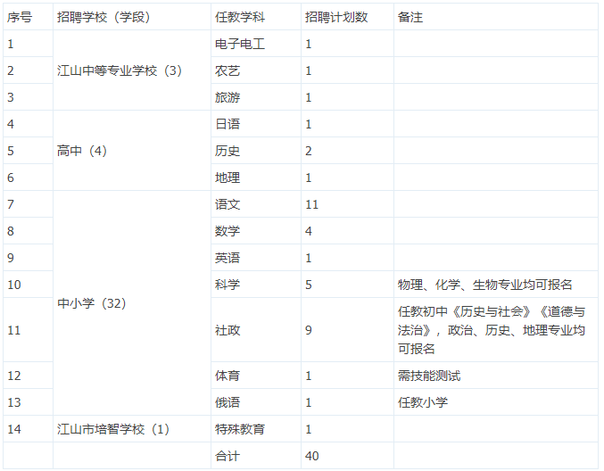 浙江衢州江山市面向优秀高校毕业生提前招聘部分2021年事业编制新教师40人公告