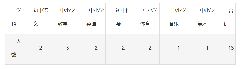 专业要求,初中语文:中国语言文学类;中小学数学:数学类、小学教育(数学方向,仅限小学数学岗位);中小学英语:英语类;初中社会:社会学类、政治学类、历史学类、法学类、哲学类、地理科学类、人文教育;中小学体育:体育学类;中小学音乐:音乐相关专业;中小学美术:美术相关专业。