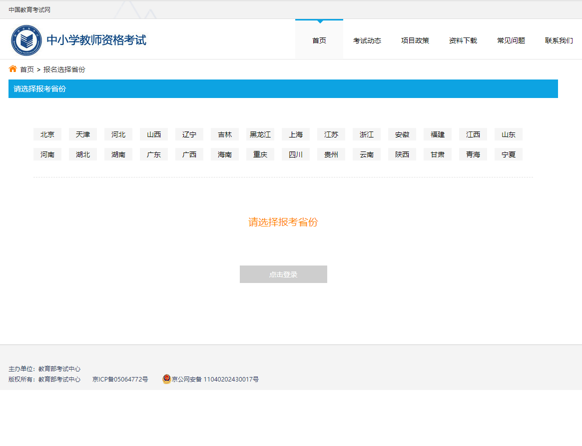 选择报考的地区,点击“点击登录”