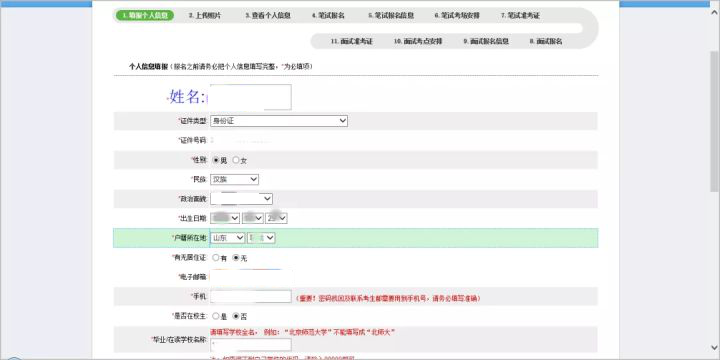 这一步考生需要填写个人信息、学历、联系方式、是否有居住证等信息。